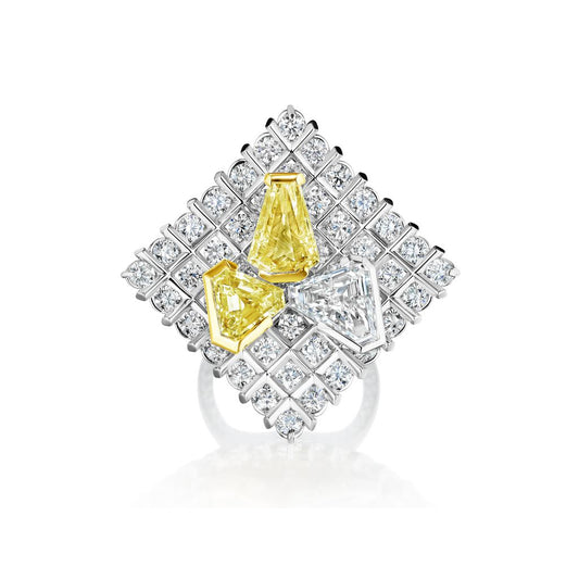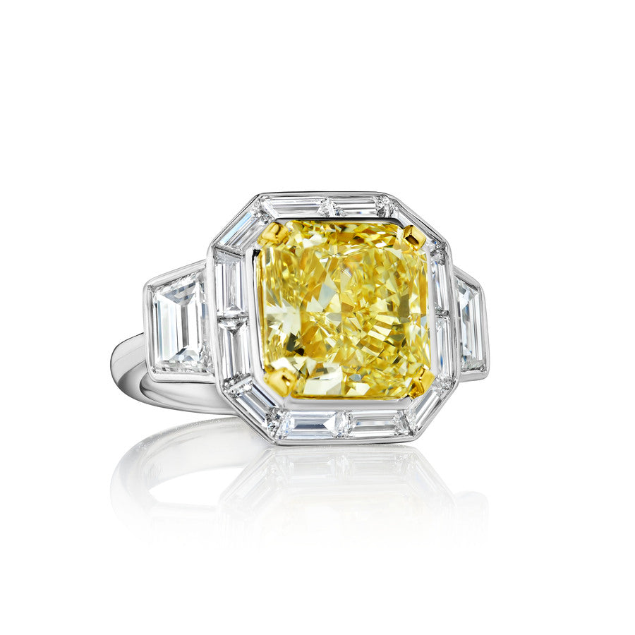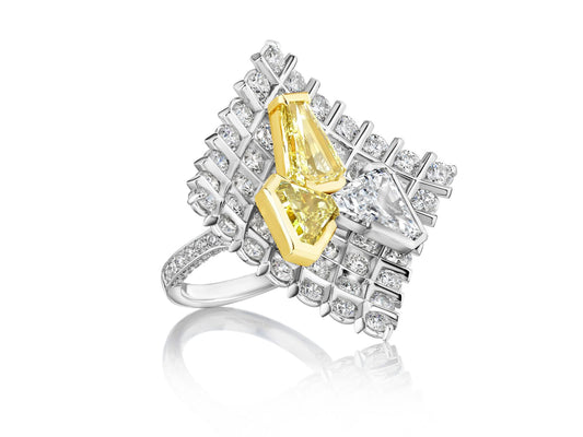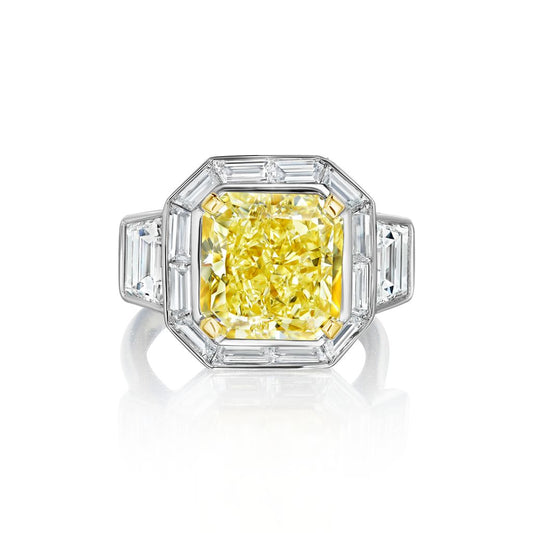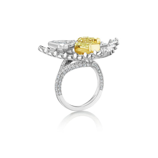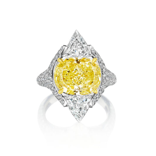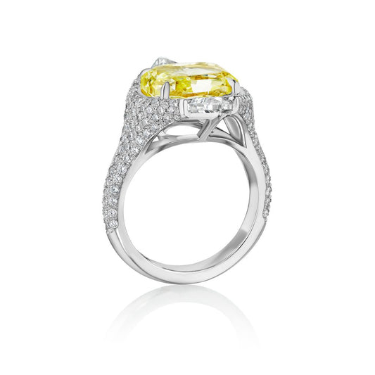 YELLOW AND WHITE DIAMOND RING, 7.43 CARATS