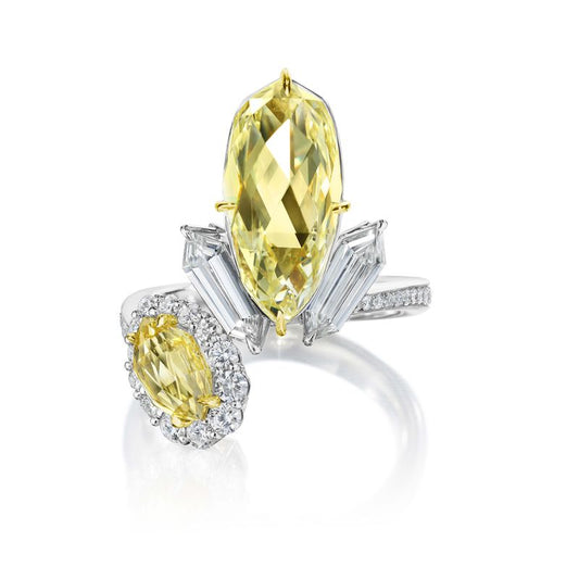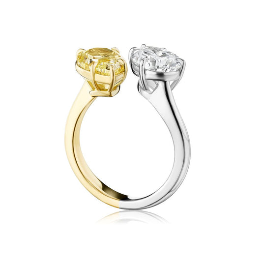 GIA CERTIFIED YELLOW AND WHITE DIAMOND TOI ET MOI RING, 5.50 CARATS