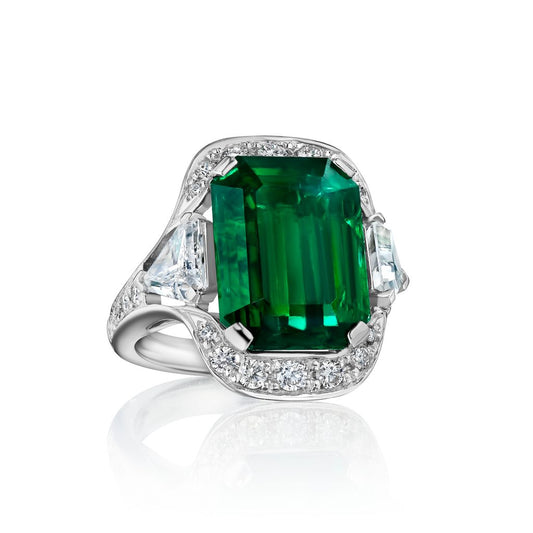 EMERALD AND DIAMOND RING, 10.08 CARATS