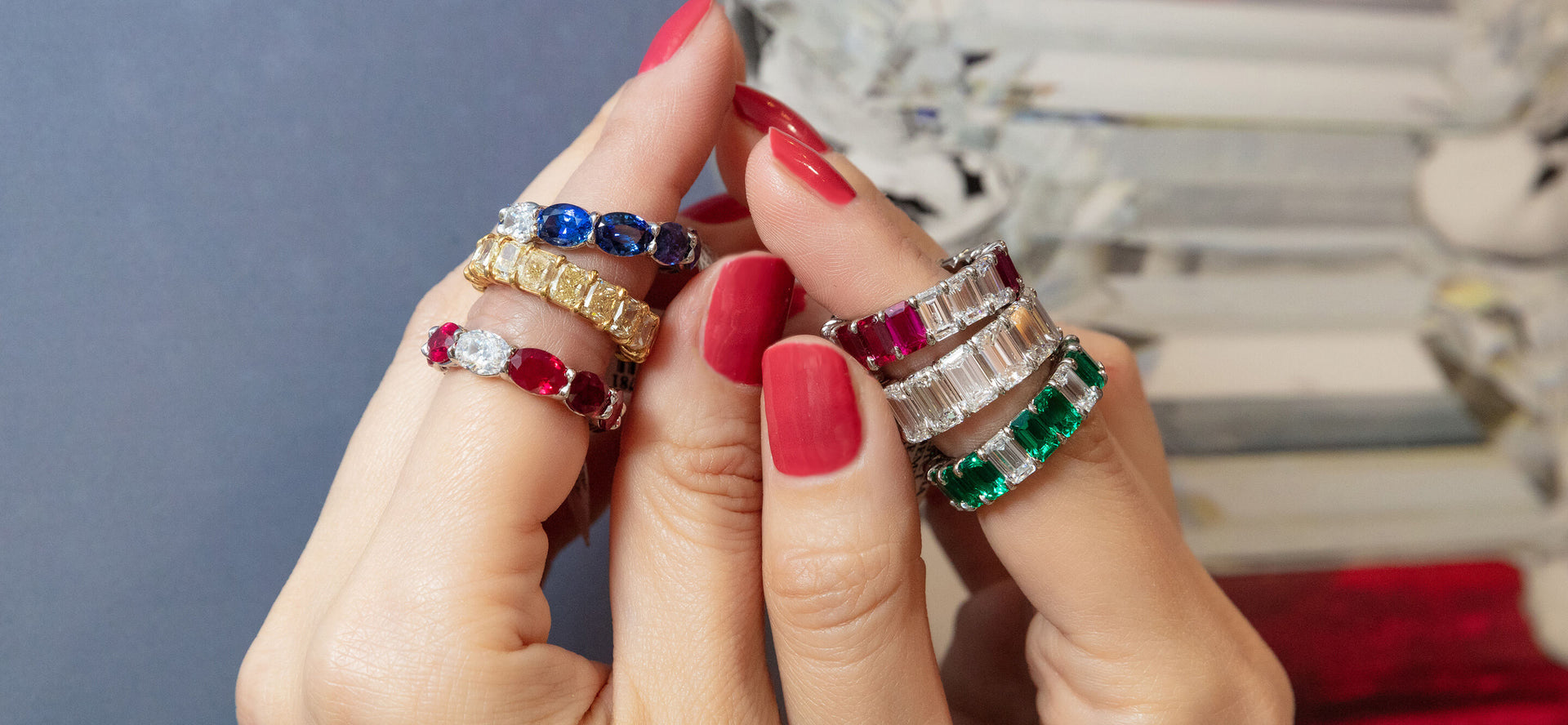 Whether you are looking for the finest of Diamond Eternity Bands or the unusual gem-set Bands, you will be mesmerized by each piece.