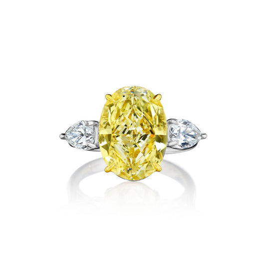 GIA CERTIFIED FANCY YELLOW OVAL DIAMOND RING, 7 CARATS