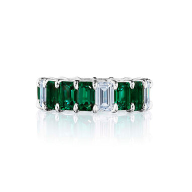 eternity band from start to finish. In addition to their classic white diamond eternity bands and colorful gemstone/diamond bands, their artistry extends to bespoke color and cut combinations, making the possibilities endless.